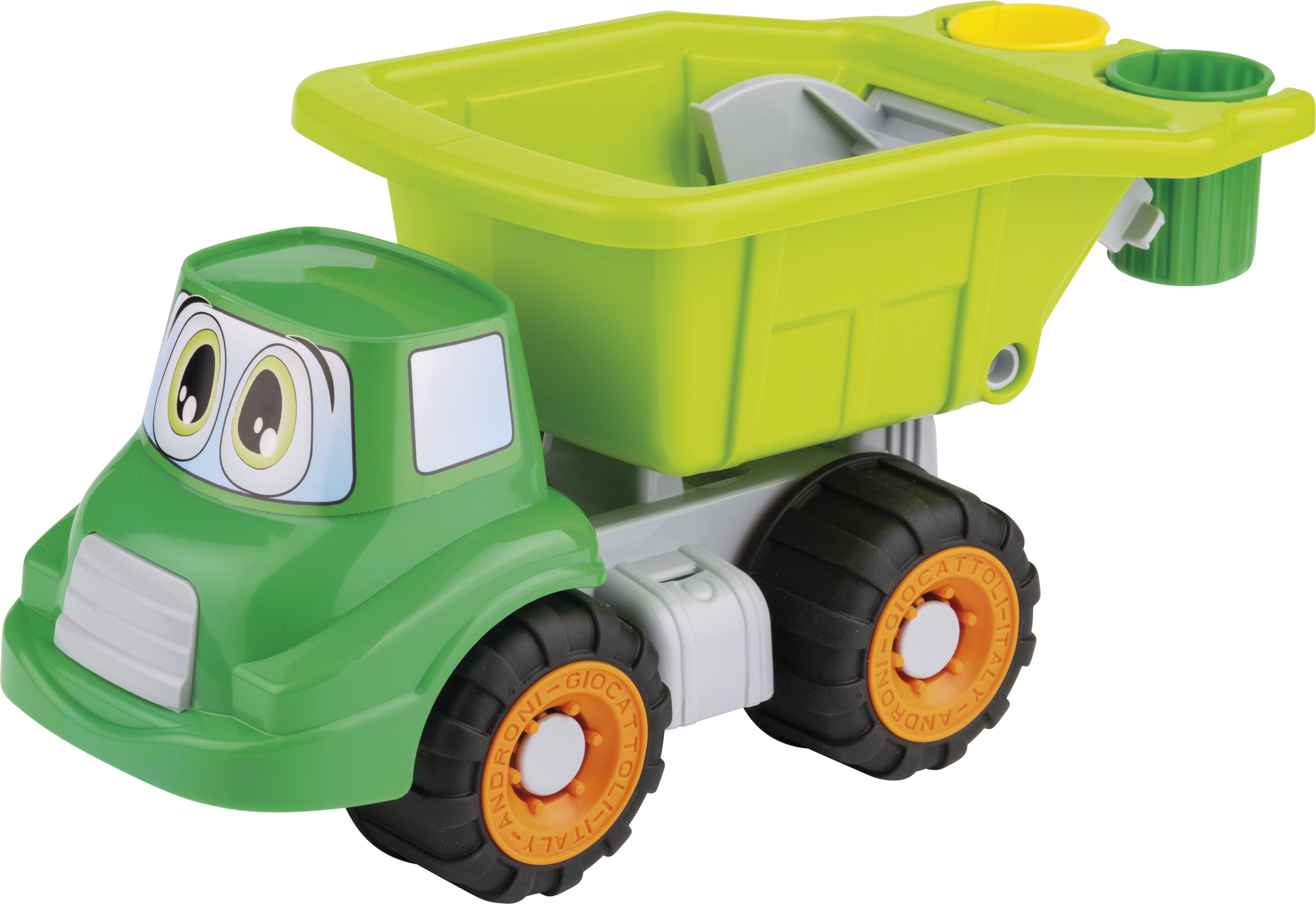 Tento veselý smetiarsky automobil má veľké gumové pohyblivé kolesá a vyklápaciu korbu s dvoma popolnicami. Ideálna hračka na každé pieskovisko!