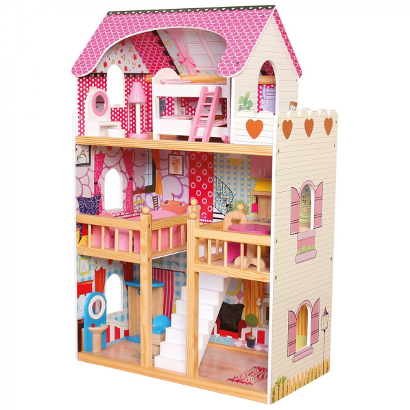 Rozměr: 60x90x30 cm Věk: 3+ Materiál: dřevo, látka, plast, kov Počet dílů: 18 Velký domek s patrem a podkrovním pokojem s terasou nabízí dostatek prostoru ke hrám i menší skupině dětí. V atraktivních barvách, zdoben neotřelými vzory, potěší každou moderní slečnu. Je bohatě zařízen nábytkem a příslušenstvím, které lze variabilně uspořádat, a hra s ním tak neomrzí. V robustním provedení, vyrobeno ze silné překližky a masivního dřeva. Vhodný pro panenky běžných rozměrů. Hlavní vlastnosti:domek a 17 dílů příslušenstvípro panenky o výšce do 30 cmrobustní dřevěné provedení Bino Europe k.s., tř. Václava Klementa 836, 293 01 Mladá Boleslav, Česká Republika , info@bino-drevenehracky.cz