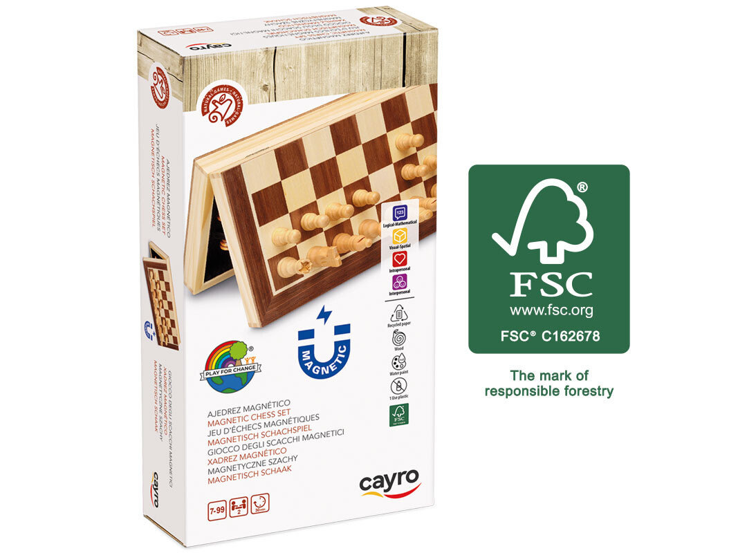 Ponorte sa do sveta klasickej stratégie s týmito skladacími magnetickými šachmi. Vyrobené z certifikovaného FSC dreva, tento elegantný herný set je nielen krásny, ale aj praktický a odolný. Vhodné pre deti od 7 rokov veku.Obsah balenia: