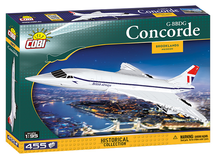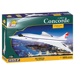 Concorde bolo nadzvukové dopravné lietadlo vyvinuté v rámci britsko-francúzskej spolupráce. Jeho komerčná prevádzka trvala od roku 1976 do roku 2003, maximálna rýchlosť presahovala dvojnásobok rýchlosti zvuku a na palubu sa vošlo 100 cestujúcich. Model predstavuje testovací britský stroj zo zbierok múzea v Brooklands. COBI SA, ul. Jaskrów 11, 04-709 Warszawa, Polsko, kontakt@cobi.pl