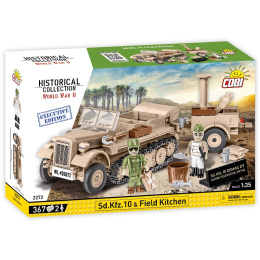 Postavte si model vozidla Demag D7 (Sd.Kfz. 10) v rozšírenej EXECUTIVE EDITION, ktorý je obohatený o model nemeckej poľnej kuchyne HF.14 v mierke 1 : 35. Poľná kuchyňa sa samostatne nepredáva a je k dispozícii iba v tejto súprave. Stavebnica obsahuje figúrky vojaka Afrikakorps a kuchára. Obe postavy sú vybavené početnými doplnkami, ako sú kanister, rýľ, nôž, ryba, pohár, škatuľa a vedro. Stavebnica sa skladá z 367 častí. Zostavený model meria 14,5 cm na dĺžku, 6,5 cm na šírku a 6 cm na výšku. Kuchyňa meria 8 cm na dĺžku, 5 cm na šírku a 7,5 cm na výšku. Kocky COBI sú plne kompatibilné so stavebnicami LEGO.
