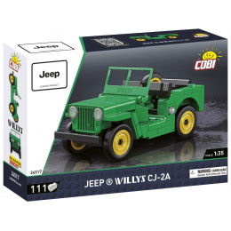 Zostavte si model terénneho automobilu Jeep Willys CJ-2A v mierke 1:35. Stavebnica sa skladá zo 111 dielikov a zostavený model má rozmery 10 cm na dĺžku, 5 cm na šírku a 5 cm na výšku. Model v klasickej zelenej farbe je vybavený mriežkou chladiča a sklopným rámom čelného skla. Jeep má otočné kolesá a je navrhnutý tak, aby sa doň zmestili figúrky COBI. Stavebnica je vyrobená v oficiálnej licencii spoločnosti Jeep.