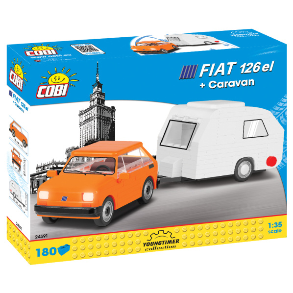Postavte si model legendárneho Malucha Fiat 126p spolu s obytným prívesom. Zostavené vozidlo meria 10 cm na dĺžku, 4,5 cm na výšku a 5 cm na šírku. Príves je dlhý 11,5 cm a vysoký 5,7 cm. Stavebnica obsahuje 180 dielikov.