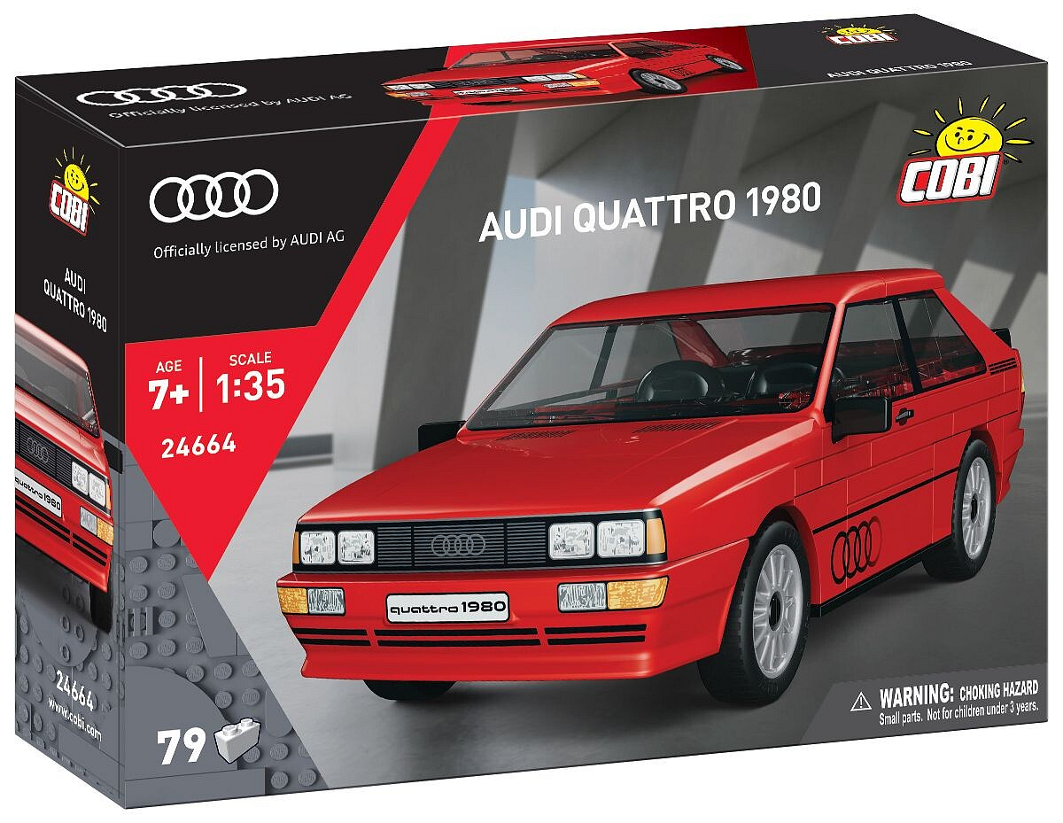 Postavte si Audi quattro (1980) – legendárne auto, ktoré navždy zmenilo svet rally! Tento model v mierke 1 : 35 obsahuje 79 kociek a po zostavení dosahuje rozmery 12,5 cm na dĺžku, 6,2 cm na šírku a 4,5 cm na výšku. Verné spracovanie zachytáva ikonickú siluetu s rozšírenými blatníkmi, športovou líniou karosérie a charakteristickým vzhľadom 80. rokov. Model v červenom prevedení ponúka realistické detaily, kvalitné spracovanie a trvácne potlače aj kvalitné nálepky. Vznikol na oficiálnej licencii Audi a je ideálny na hranie aj vystavenie v zbierke.