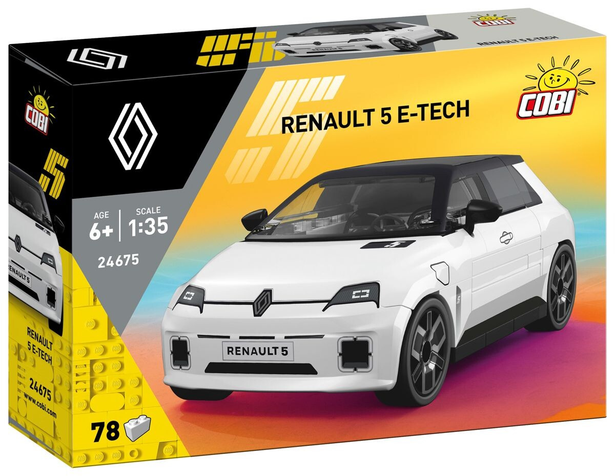 Postavte si Renault 5 E-Tech Electric, modernú elektrickú verziu legendárneho európskeho hatchbacku, ktorý sa v roku 2024 vrátil na cesty v novej podobe. Tento model v mierke 1 : 35 obsahuje 78 kociek a po zostavení dosahuje rozmery 11,5 cm na dĺžku, 6,5 cm na šírku a 4,5 cm na výšku. Verným spôsobom zachytáva retro-futuristickú siluetu vozidla v elegantnom bielom vyhotovení, vrátane typických svetlometov a výrazných blatníkov. Model je vybavený otočnými kolesami s gumovými pneumatikami a detaily sú spracované pomocou trvácnych potlačí v kombinácii s kvalitnou nálepkou. Vďaka oficiálnej licencii Renault predstavuje autentický zberateľský model vhodný na vystavenie aj hranie.