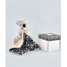 Plyšová koala s dečkou doprovází miminko od narození, aby mu přinesla hebkost, pohodlí a objetí. Ultra jemná a uklidňující je strana se svěžím bavlněným potiskem vytvořeným našimi stylisty. Rozvíjí smysly a zvědavost. Je to velmi pěkný dárek k Vánocům nebo k oslavě narození miminka. Prezentováno v pěkně ladící krabičce.