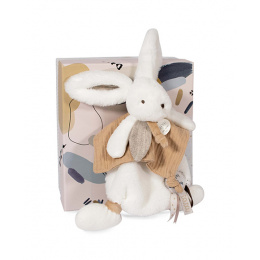 Měkký králíček se rychle stane oblíbeným společníkem Vašeho dítěte. Krásný, stylový s bambulkou v béžové barvě, zdobený efektními, dovedně sladěnými tkanými stuhami. Je posazený do nádherné dárkové krabičky s grafikou evokující modernost i luxus. Tato plyšová hračka je také ideální jako dárek.