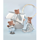Plyšový medvídek s dečkou doprovází miminko od narození, aby mu přinesla hebkost, pohodlí a objetí. Ultra jemná a uklidňující je strana se svěžím bavlněným potiskem vytvořeným našimi stylisty. Rozvíjí smysly a zvědavost. Je to velmi pěkný dárek k Vánocům nebo k oslavě narození miminka. Prezentováno v pěkně ladící krabičce.