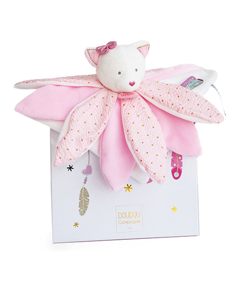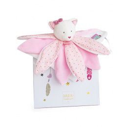 Doudou Dárková sada - plyšový muchláček růžová kočka 26 cm