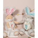 Plyšový zajíček s dečkou doprovází miminko od narození, aby mu přinesl hebkost, pohodlí a objetí. Rozvíjí smysly a zvědavost. Tento rozkošný zajíček bude s jemnými doteky něžně dohlížet na všechny maličké... Je to velmi pěkný dárek k Vánocům nebo k oslavě narození miminka. Prezentováno v nádherné dárkové krabičce s grafikou evokující modernost i luxus.