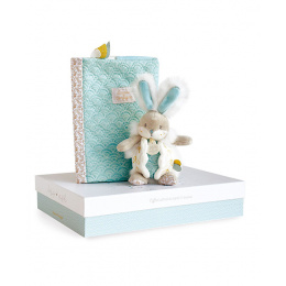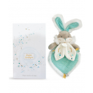 Doudou Dárková sada - tyrkysový plyšový králíček a pouzdro na plenky