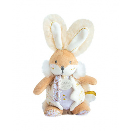 Něha, pastelové barvy a spousta rafinovanosti je tento králíček s chrastítkem a také držákem dudlíku. Doprovází miminko od narození, aby mu přinesl hebkost, pohodlí a také držel dudlík v jeho blízkosti. Rozvíjí smysly a zvědavost. Je to velmi pěkný dárek k Vánocům nebo k oslavě narození miminka. Je extrémně měkký a příjemný na dotek.