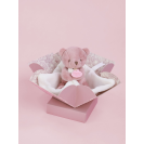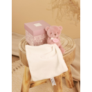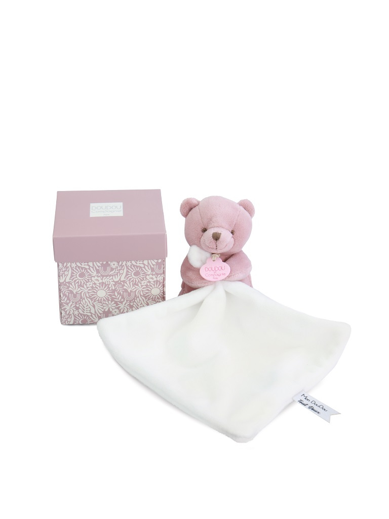 Malý roztomilý medvídek s dečkou je vždy připraven vnést do života dítěte něžnost. Vyberte svému dítku vzácného společníka, který ho bude doprovázet při jeho dobrodružstvích ve dne i v noci. Tento malý plyšový medvídek doprovází miminko od narození, aby mu přinesl hebkost, pohodlí a objetí. Pro miminko bude mít především uklidňující efekt. Rozvíjí smysly a zvědavost. K dispozici je v 8 jemných barvách. Hračka je extrémně měkká a je dodávána v pěkně ladící krabičce. Spodní část krabičky je možno rozložit do tvaru květu, můžete tak medvídkovi udělat postýlku a přikrýt ho jeho dečkou. Nebo dejte do květu medvídka na dečku sednout a plyšáček se tak stane velmi pěknou dekorací každého prostoru.