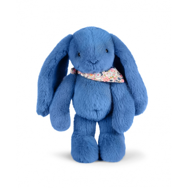 Heboučký králíček o velikosti 35 cm s bavlněným květovaným šátkem má přátelský obličej, dlouhá ouška a doprovází miminko od narození po celé dětství, aby mu přinesl pocit pohodlí a bezpečí. Díky barevnému provedení v jemných barvách a prémiovému hebkému materiálu vybízí k tulení a muchlání a dítě zabaví i uklidní. Přispívá k rozvoji smyslového vnímání, jemné motoriky a je roztomilým pomocníkem pro klidné usínání. Ideální dárek pro jakoukoliv příležitost.