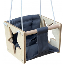 Tato dětská houpačka z kombinovaného bukového-březového dřeva a sedátka ze 100% bavlny Vám nesmí chybět! Moderní minimalistický design s prvkem hvězdy a barevné spojení tmavě šedé s přírodním dřevem je vskutku brilantní - hodí se do každého ex/interiéru! Lana se 2 karabinami jsou výškově nastavitelná (až 180 cm).