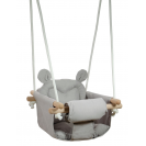 Komfort, bezpečí, zábava... méďa přesně ví, co spokojená miminka potřebují! Tato dětská houpačka nabízí nejen spousty hodin legrace, ale i aktivní odpočinek. Konstrukce z bukového dřeva a sedátko ze 100% bavlny zajišťují plné pohodlí a bezpečnost při houpání. Lana se 2 karabinami jsou výškově nastavitelná (až 180 cm). Konec lan je zakončen plastovou pojistkou proti jejich rozvázání. Díky tlumeným barvám a jednoduchému designu je houpačka také brilantním doplňkem do pokojíku!