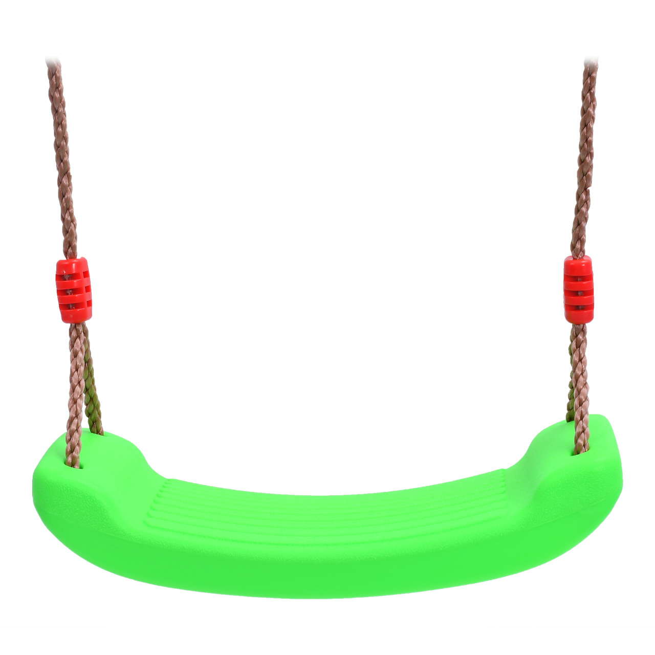 Pevná plastová houpačka jasně zelené barvy, s výškově nastavitelnými lany. Nezbytný pomocník pro objevitele zábavy venku, na dětském hřišti.
