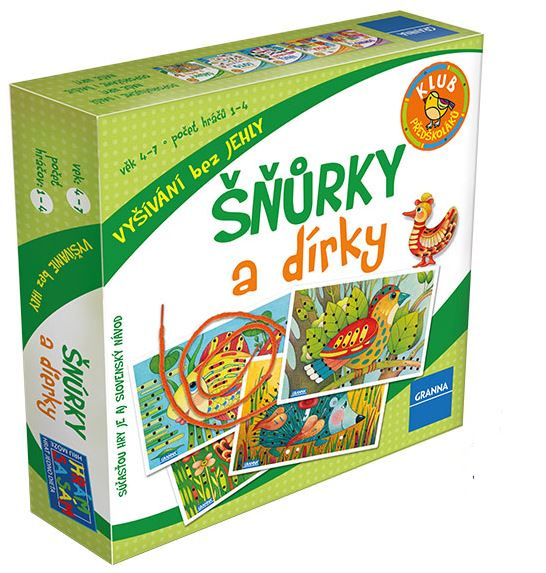 Vzdelávacia hra z radu KLUB PREDŠKOLÁKOV pre 1 až 4 hráčov od 4 do 7 rokov v deťoch prebúdza estetické cítenie a cit pre farby aj ich správnu kombináciu. Zároveň zdokonaľuje a precvičuje jemnú motoriku a schopnosť sústredenia. Deti prevliekajú otvory v kartičkách rôznofarebné šnúrky a vytvárajú tak obrázky, ktoré môžu vyzerať zakaždým trochu inak. Všetko závisí od fantázie dieťaťa.