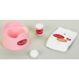 Nočník pre bábiky, fľaštička na detský púder a plienka.