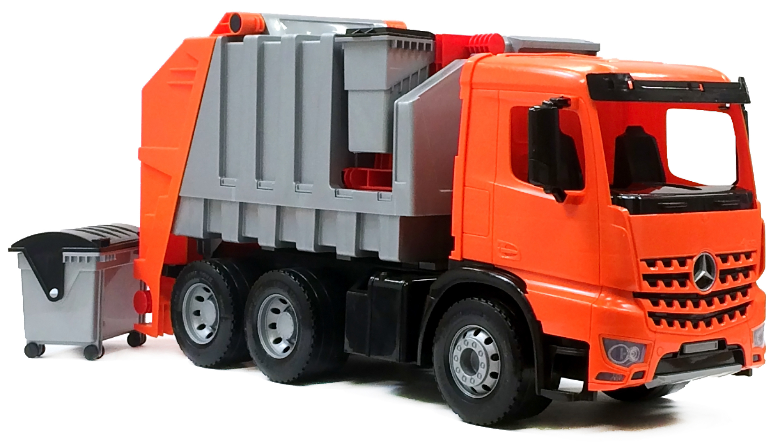 Plne multifunkčné smetiarske auto s odnímateľnou smetnou nádobou a kontajnerom na kolieskach. Vyrobené z kvalitného plastu. Veľkosť 72x36x24cm. Vhodné pre deti od 3 rokov.