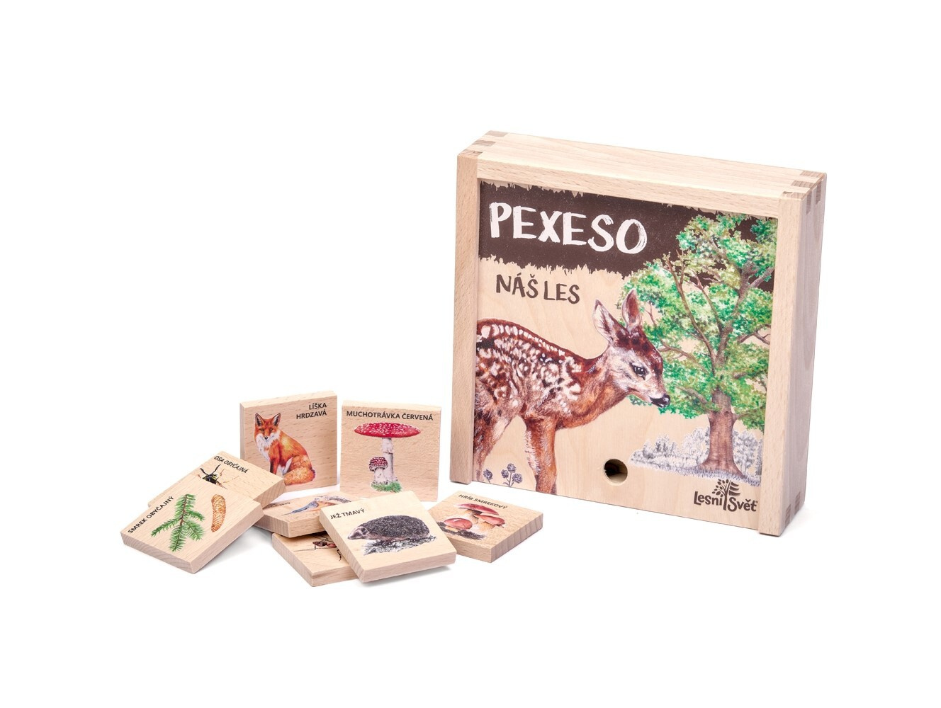 Pexeso je vyrobené z certifikovaného dreva PEFC, čo zaručuje šetrný prístup k prírode. Vďaka prírodnému materiálu je nielen krásne, ale aj odolné a ekologické. Užite si rodinné chvíle plné zábavy a zároveň sa naučte niečo nové o lesnom svete!