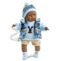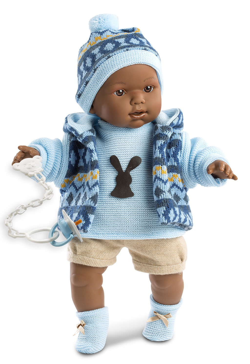 Hovoriaca bábika s mäkkým látkovým telom a s vláskami po celej hlave. Po vytiahnutí cumlíka z úst začne bábika hovoriť „mama“, „papa“ a vydávať reálny zvuk plačúceho bábätka. Bábiku možno utíšiť cumlíkom. Veľkosť 42 cm. Súčasťou balenia je 3 x gombíková batéria LR44.