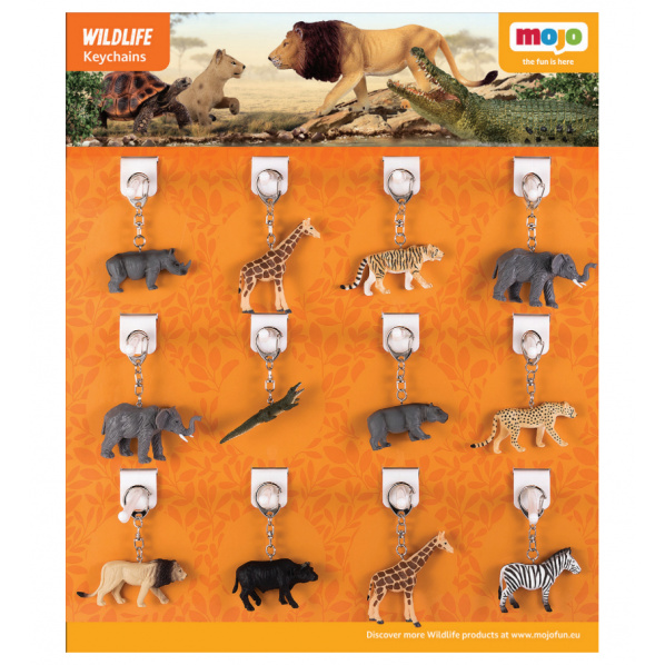 Popis výrobku Mojo Displej 36 ks přívěsků na klíče - Zvířátka ze zoo