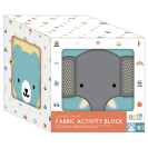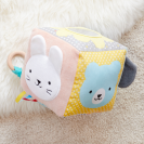 Měkká a hebká kostka provedením stimuluje hmat nejmenších. Je vyvedena v kontrastních barvách a vybavena rolničkou, aby poutala pozornost. Na stěnách jsou vyobrazeny přátelské obličeje zvířátek, které stimulují zvědavost vyčnívajícími oušky. Kostka je také vybavena zrcátkem, dozdobena několika stuhami a vybavena dřevěným kroužkem sloužícím jako kousátko. Je vyrobena z organické bavlny a plněná materiálem z recyklovaných plastových lahví.