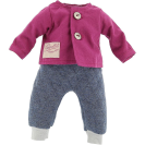Obleček určený zejména pro panenky Petitcollin řady Bibichou. Skládá se z fialové košile, šedých tepláčků, bílého šátku s potiskem a šedé čepičky zdobené ušima. Oblečky Petitcollin jsou pečlivě zpracované, vynikají francouzskou elegancí, jedinečnou barevností a vzory, díky kterým jsou poutavé a nezaměnitelné. Dodáváno v papírové krabičce s průhledem a plastovým ramínkem.