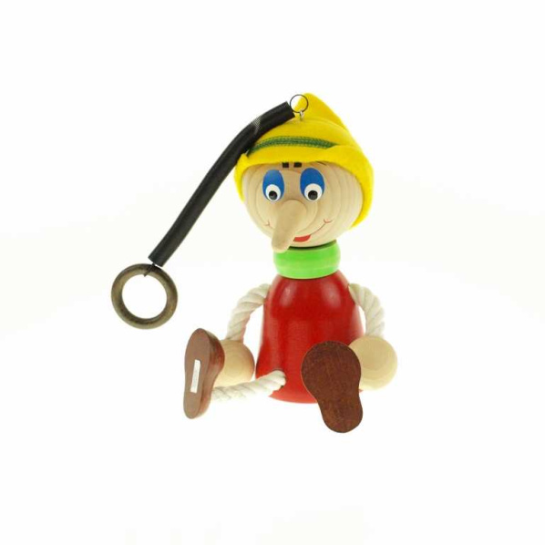 Rozměry: 26x10x15 cm Věk: 3+ Materiál: dřevo, kov, látka Populární postavička Pinocchia na pružině, která poskakuje nahoru a dolů. Dřevěná figurka pro malé i velké. Lze ho zavěsit za dřevěný kroužek na konci pružinky. Hlavní vlastnosti: výrobek splňuje požadavky EU na bezpečnost hračekvhodný pro děti od 3 let , ,
