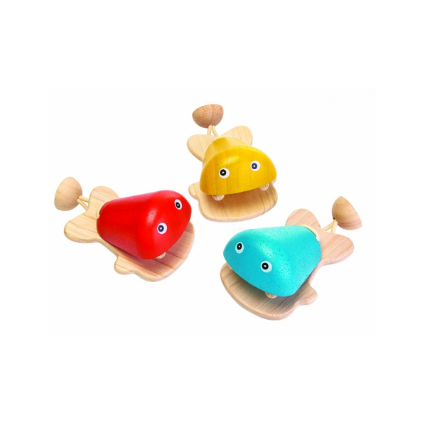 Roztomilé rybí kastaněty svým vzhledem snadno přimějí děti k tomu, aby si s nimi zaklapaly. Kombinujte s dalšími hudebními nástroji PlanToys® a vytvořte kapelu! Cena je uvedena za 1 ks. K dispozici jsou 3 varianty, pokud máte o konkrétní zájem, doplňte prosím volbu do poznámky v objednávce. Pokud bude skladem, rádi Vám vyhovíme. V případě nezadání konkrétního motivu zasíláme náhodně. Hlavní vlastnosti: 3 barevná provedení, modrá, žlutá a červenávyrobeno z 100% FSC® dřeva     Značka a certifikát FSC® (Forest Stewardship Council) zaručuje, že dřevo, ze kterého byl produkt vyroben, nebylo vytěženo nelegálně a pochází z lesů obhospodařovaných šetrným či přírodě blízkým způsobem, ve kterém jsou dodržovány přísné environmentální a sociální požadavky. Značka FSC® na výrobku znamená, že svým nákupem pomáháte chránit lesy a podporujete šetrné, odpovědné či přírodě blízké hospodaření, díky kterému jsou naše lesy stabilnější, zdravější, mají přirozenou druhovou skladbu a lépe odolávají negativním následkům klimatických změn.