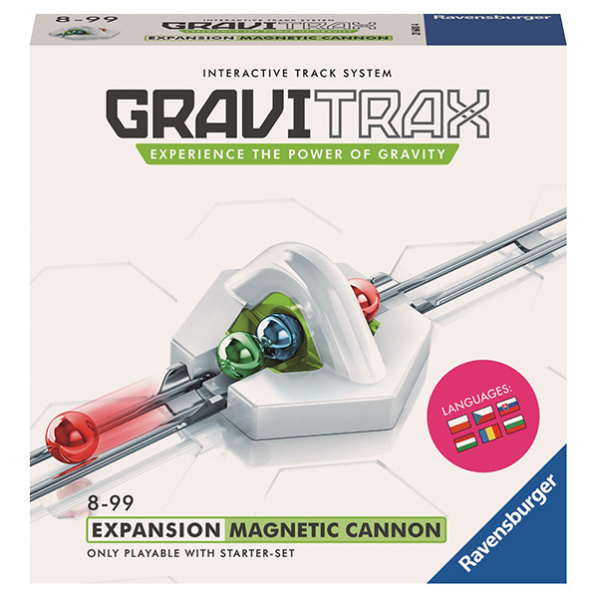 Ešte viac energie pre vašu guľôčkovú dráhu! S magnetickým kanónom bude guľka prekonávať neuveriteľné výškové rozdiely a kotúľať sa ešte dlhšie. Ravensburger AG, Robert-Bosch-Straße 1, 88214 Ravensburg, Germany, info@ravensburger.de