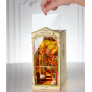 Vytvořte si kouzelnou květinovou oázu mezi Vašimi knihami díky miniaturnímu květinářství. Přeneste se do uličky, ve které můžete obdivovat jemné detaily budov, jako jsou stěny pokryté břečťanem, klenutá okna, propracované dveře a balkón, pruhované markýzy, odpočívající kočka a spousta květin. Příjemné LED osvětlení umocní dojem z tohoto přívětivého květinového koutku a navodí ve Vašem domově atmosféru klidu a pohody.