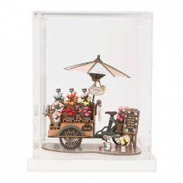 Pokud Vás nebaví skládačky nebo na ně nemáte čas, ale chtěli byste mít v obývacím pokoji či v kanceláři stylovou dekoraci, displej s poskládaným květinovým vozíkem je pro Vás ideální. Květinový vozík je výsledkem 3D dřevěné skládačky TGS03. Plastový box chrání před prachem a nečistotami a tento jedinečný kousek v něm krásně vynikne.