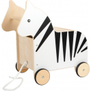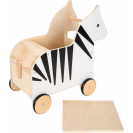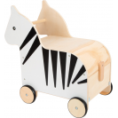 Ahoj, zebro! Tento úložný box z robustního dřeva je praktickým organizérem, který uvnitř nabízí nejen velkorysý úložný prostor pro hračky a další věci, ale také spoustu zábavy při hraní. Dá se tlačit za rukojeť hlavy zebry anebo tahat za šňůrku. Odnímatelné víko umožňuje snadné uzavření úložného prostoru shora. V přední části je integrovaná ochrana proti přiskřípnutí prstíků a v zadní část boxu na hračky má klapku, která se otevírá a zavírá ocasem zebry. Zebra má pogumovaná kolečka pro tichou a bezpečnou jízdu. Díky atraktivnímu designu, decentnímu potisku zebry je pojízdný box na hračky praktickým a stylovým doplňkem každého dětského pokoje.