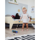 Multifunkční dřevěný vysavač pro děti, který je zároveň jezdíkem. Pro realistickou hru jsou v balení přiloženy fleecové kousky „smetí“, které děti mohou „vysát“ za pomocí suchého zipu na vysavači i na smetí. Zároveň kousky smetí můžete uložit do vysavače samého, nemusíte tak hledat další úložný prostor. Pro mladé ženy a muže v domácnosti! Učí děti o důležitosti domácích prací a také jim pomůže s prvními krůčky.