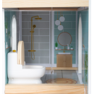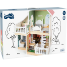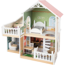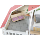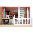 Tento moderní domeček pro panenky má otevřenou přední stranu s krásnými uměleckými detaily a moderním interiérem. Kombinovaná kuchyně s jídelním koutem, ložnicí, koupelnou a také malou terasou s posezením. Perfektní hračka pro představivou hru dětí. Otevřené bydlení s točitým schodištěm, otevíratelnými okny, moderní koupelnou v přízemí, s plexisklem. Najdete zde také 8 ks nábytku, textilní doplňky jako např. povlečení a polštáře. Velká terasa s posezením, otevíratelná toaleta, kuchyňské skříňky a lednice s dveřmi, také šuplíky zajistí realistickou hru. Lavice i postel mají textilní polštáře, postel také peřinu. Tato vila pro panenky se bude hodit do každého obývacího i dětského pokoje a to díky světlé fasádě a moderním barvám. Díky otevřené straně si s domečkem může hrát několik dětí najednou. Vhodné pro panenky do 12 cm.