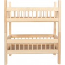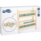 Tato patrová postel pro panenky z odolného přírodního dřeva nabízí dvojnásobný prostor pro spánek. Lze ji použít jako patrovou postel, nebo ji snadno rozdělit na dvě samostatná lůžka. Díky zaobleným hranám, kvalitnímu zpracování a velikosti vhodné pro panenky a plyšové hračky do 39 cm je ideální volbou pro malé rodiče. Součástí je i pohodlné ložní prádlo – velké deky, polštáře a prostěradla, které zajistí panenkám útulné místo pro odpočinek. Tato variabilní postýlka se snadno přizpůsobí každé hře. Jako patrová postel přináší zábavu na dvou úrovních, jako dvě samostatné postele umožňuje hru s více panenkami najednou. Přirozený vzhled a jednoduchý design z ní dělají stylový a nadčasový doplněk do dětského pokoje. Hraní na uspávání a péči o panenky podporuje rozvoj empatie, sociálních dovedností i porozumění každodenním situacím, děti tak přirozeně napodobují svět dospělých.