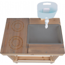 Tato venkovní dětská kuchyňka z pevného masivního dřeva vyniká odolnou konstrukcí a stylovým designem. Pracovní plocha je šedě lakovaná, odolná vůči povětrnostním vlivům a doplněná o varnou desku s vyrytým označením „dotykové ovládání“. Součástí je také odnímatelný zásobník na vodu s kohoutkem, stabilní plastový dřez a nabízí dostatek úložného prostoru v prostorné spodní polici. Praktické otvory pro odkládání hraček a nádobí navíc pomáhají udržet pořádek. Kuchyňka je ideální do menších zahrad, na terasy nebo balkony – je odolná, stylová a zároveň funkční. Lze ji navíc využít i jako herní stolek pro děti. Díky kompaktním rozměrům a promyšleným detailům je tato kvalitní kuchyňka z masivního dřeva skvělým doplňkem každého venkovního herního prostoru. Děti si mohou vařit podle vlastní fantazie, hrát si s vodou i hlínou a rozvíjet své kreativní nápady. Neutrální barevné provedení a odolná pracovní plocha se snadno sladí s každým zahradním prostředím. Jako venkovní kuchyňka nabízí pestrou a smysluplnou zábavu. Pro zajištění dlouhé životnosti doporučujeme neošetřené dřevo pravidelně ošetřit ochranným nátěrem.