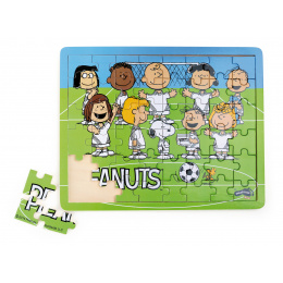 Dětské puzzle ze dřeva pro všechny, kteří mají rádi animovanou postavičku Snoopyho. Tato dřevěná skládačka se Snoopym, Charlym Brownem a jejich přáteli oslavující své fotbalové vítězství. Dílky jsou umístěny na dřevěné desce s vyfrézovaným obrysem pro snadné skládání. Přibližná velikost jednoho dílků je cca 4 cm.