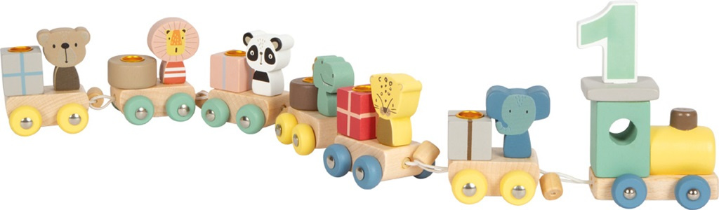 Vďaka vysokému množstvu prírodného dreva v kombinácii s modernými farbami je tento narodeninový vlak skutočným lákadlom a príjemnou dekoráciou na každom narodeninovom stole.