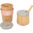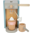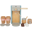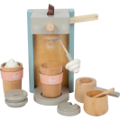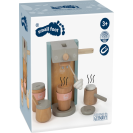 Kávové kapsle do kávovaru zapadnou pomocí boční páčky, kuželovitý tvar kelímků zajistí, že kapsle spadne přímo do nich. Magnetický napěňovač vám poskytne mléko do kávy. Napěňovač je vyroben z drátku obaleného v textilu, ohýbá se do všech stran a na konci má magnet, na který můžete připevnit mléčnou pěnu. Tato sada má barevný design kompatibilní s dalšími produkty řady Tasty od Small Foot, například Dřevěnou kuchyňkou LE12216.
