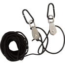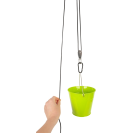 Do zahradního domečku, domu na stromě, na prolézačky nebo kamkoliv jinam! S tímto kladkostrojem se silným lanem a kovovým kyblíkem si mohou mladí dobrodruhové dopravit jakýkoliv náklad na tato zmíněná vyvýšená místa a zase zpět dolů. Děti tak nemusí opakovaně lézt nahoru a dolů. Je to zábavná hračka, která trénuje zručnost. Kovové ucho je navrženo tak, aby se karabina s lanem neposouvala. Děti se naučí, jak funguje kladkostroj a budou moci jednoduše hýbat těžkými náklady. Perfektní hračka na zahradu.