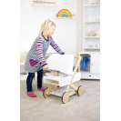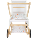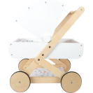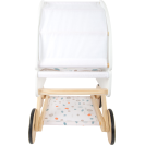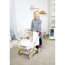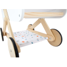 Pro panenky, plyšáky a jejich kamarády jen to nejlepší! Tento moderní kočárek pro panenky na vás udělá dojem svým jemným, lineárním skandinávským designem a také úložným prostorem pod lehátkem. Díky odklápěcí stříšce mohou panenky a plyšáci z kočárku koukat dopředu nebo dozadu. Oboustranné a genderově neutrální povlečení s peřinou nadměrné velikosti zajistí, že panenky a plyšáci do 46 cm budou v pohodlí. Kočárek má tichá pogumovaná kolečka. Moderní kočár s prvky z přírodního dřeva, s omyvatelným textilem jen čeká kdo se v něm sveze! Je velmi stabilní i při své nízké váze, hodí se do každého pokoje a to díky svému neutrálnímu designu.