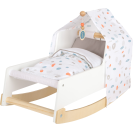 Panenky také potřebují spát! Tato moderní kolébka ve skandinávském designu je genderově neutrální, má oboustranné povlečení a pod velkou peřinou mohou spát panenky a plyšáci do 46 cm. Spodní část tzv. lyže kolébky jsou oddělitelné, stejně jako baldachýn. Vysoce kvalitní, stabilní konstrukce, zaoblené hrany, viditelně ze dřeva... Perfektní hračka do každého dětského pokoje.
