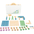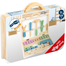 Dejte průchod nadšenému kutilství! Malí řemeslníci i řemeslnice se pomocí kufříku s nářadím stanou nenahraditelnými profesionály. Naleznou v něm všechny nezbytné nástroje, od úhelníku s funkční vodováhou, až po maketu vrtačky s několika magnetickými nástavci. V příslušenství je zahrnuto také množství barevných stavebnicových dílů s robustními šrouby a maticemi. Jejich prostřednictvím mohou děti dát průchod své fantazii, vytvářet rozmanité konstrukce, a tak rozvíjet svou zručnost i další užitečné dovednosti. Pevný a odolný kufřík je uvnitř vybaven gumovými popruhy, díky nimž mohou být všechny součásti vždy bezpečně zajištěny a přehledně uspořádány. Je opatřen spolehlivým kovovým zavíráním a madlem přizpůsobeným ručkám malých šikulů. Souprava je vyrobena z kombinace překližky a masivního dřeva, může proto nabídnout vysokou životnost naplněnou bezpočtem těch nejužitečnějších zlepšováků. Lze vybírat z dvojice různě dekorovaných a barevných provedení, dílenský Miniwob a skandinávský Nordic.
