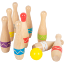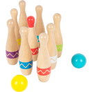 Kdo shodí všech devět kuželek? Tento set je vyroben ze 100% certifikovaného FSC® dřeva, zábavná hra pro všechny věkové kategorie! Devět kuželek je vyrobeno z pevného dřeva v moderním „Active“ designu, dvě dřevěné koule mají velikost tak akorát pro děti. Kuželky jsou vhodné do vnitřních i venkovních prostor. Kuželkový set je uložen v textilním pytlíku s poutky, můžete si jej tak vzít kamkoliv s sebou. Díky moderním barevným potiskům kuželky jednoduše uvidíte i v trávě a z větší dálky. Kdo má nejpřesnější mušku?