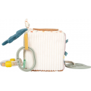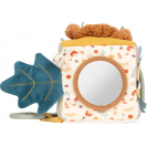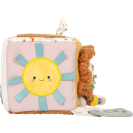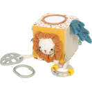 Tato měkká hrací kostka je všestrannou hračkou pro miminka, která nabízí spoustu podnětů ke hře i objevování. Šusticí prvky, zabudovaný zvoneček, chrastítko i kousátko vytvářejí rozmanité zvuky a hravou formou podporují raný vývoj dítěte. Různorodé textury látek stimulují hmat, zatímco uchopování, mačkání a otáčení jednotlivých stran kostky přirozeně rozvíjí jemnou motoriku. Díky praktickému poutku lze kostku snadno připevnit na kočárek, autosedačku nebo hrazdičku, takže je vždy po ruce. Kompaktní a měkce polstrovaný tvar činí kostku bezpečnou a příjemnou na mazlení i pro ty nejmenší. Veselý motiv lvíčka, roztomilý design a harmonické barvy z ní dělají oblíbenou hračku každého miminka. Skvěle se hodí jako doplněk k dalším produktům z kolekce Little Lion a je ideálním dárkem k narození dítěte nebo ke křtu.