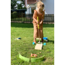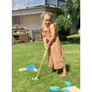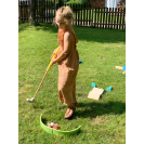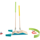 Sada na minigolf vyrobena z odolného a silného dřeva. V balení najdete golfové hole v 3 různých délkách, pro golfisty a golfistky všech velikostí. Míčky jsou bezpečně měkké. Zabaleno v praktickém vaku k jednoduchému uskladnění i přenosu. V balení vlny, houpačka, tunel a další překážky. Rozložení dráhy a úroveň obtížnosti lze nastavit pro různé věkové kategorie. Trénuje zručnost a soustředění. Klasická hra v moderním designu.