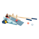 Vyšlete míček po obří vlně do žraločí tlamy ve vzrušující minigolfové hře! Na své si při ní přijdou fanoušci sportu i přírody. Pokud hráč míčkem trefí žraločí tlamu, hrozivé čelisti sklapnou a on efektně skóruje. Bok atrakce je vybaven otvorem, kterým jsou spolknuté míčky vraceny zpět do hry. Díky sadě holí a míčků snadno zabaví skupinku dětí, a to i v pokoji během deštivých dní. Všechny součásti jsou vyrobeny z pevné a odolné kombinace překližky a masivního dřeva.